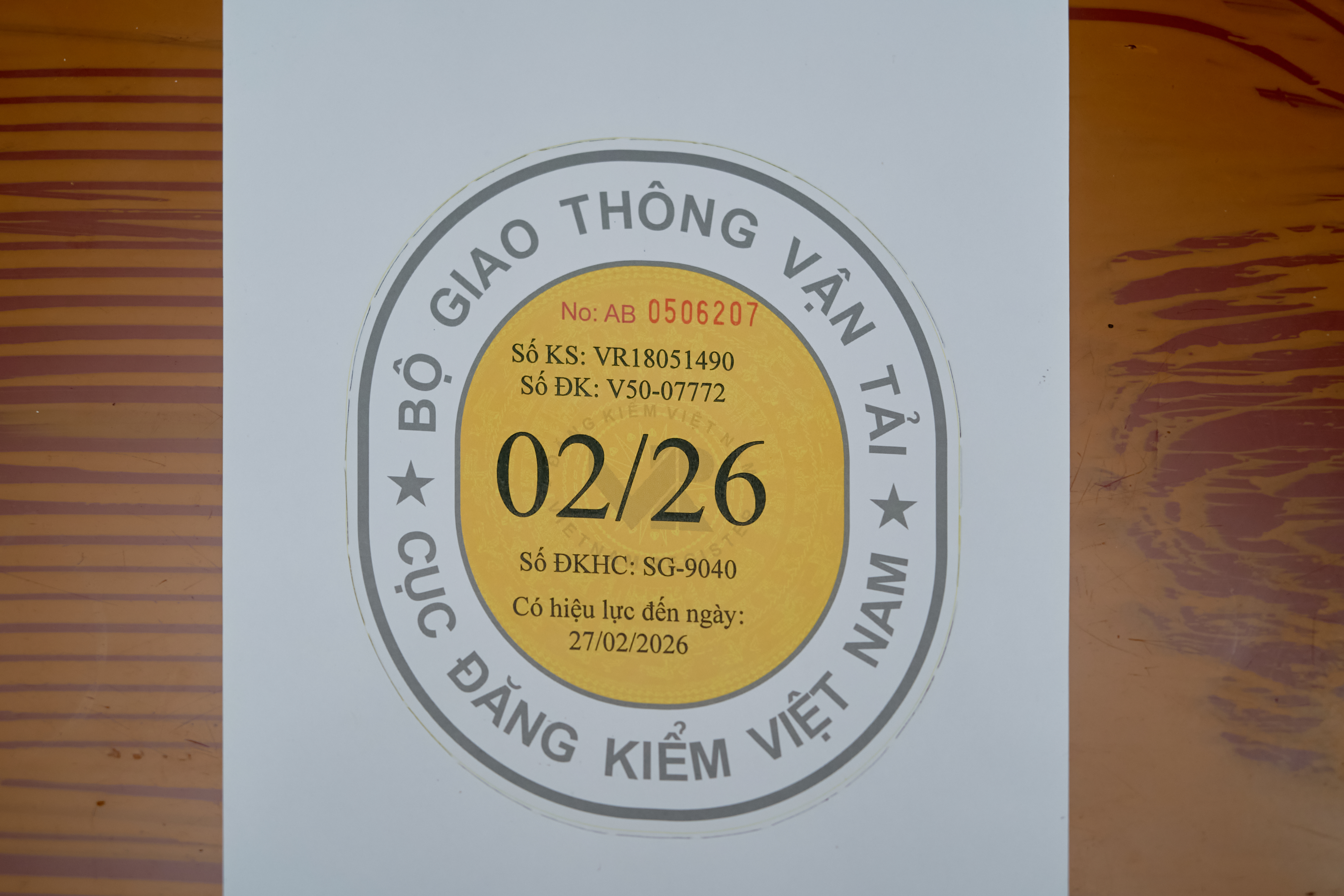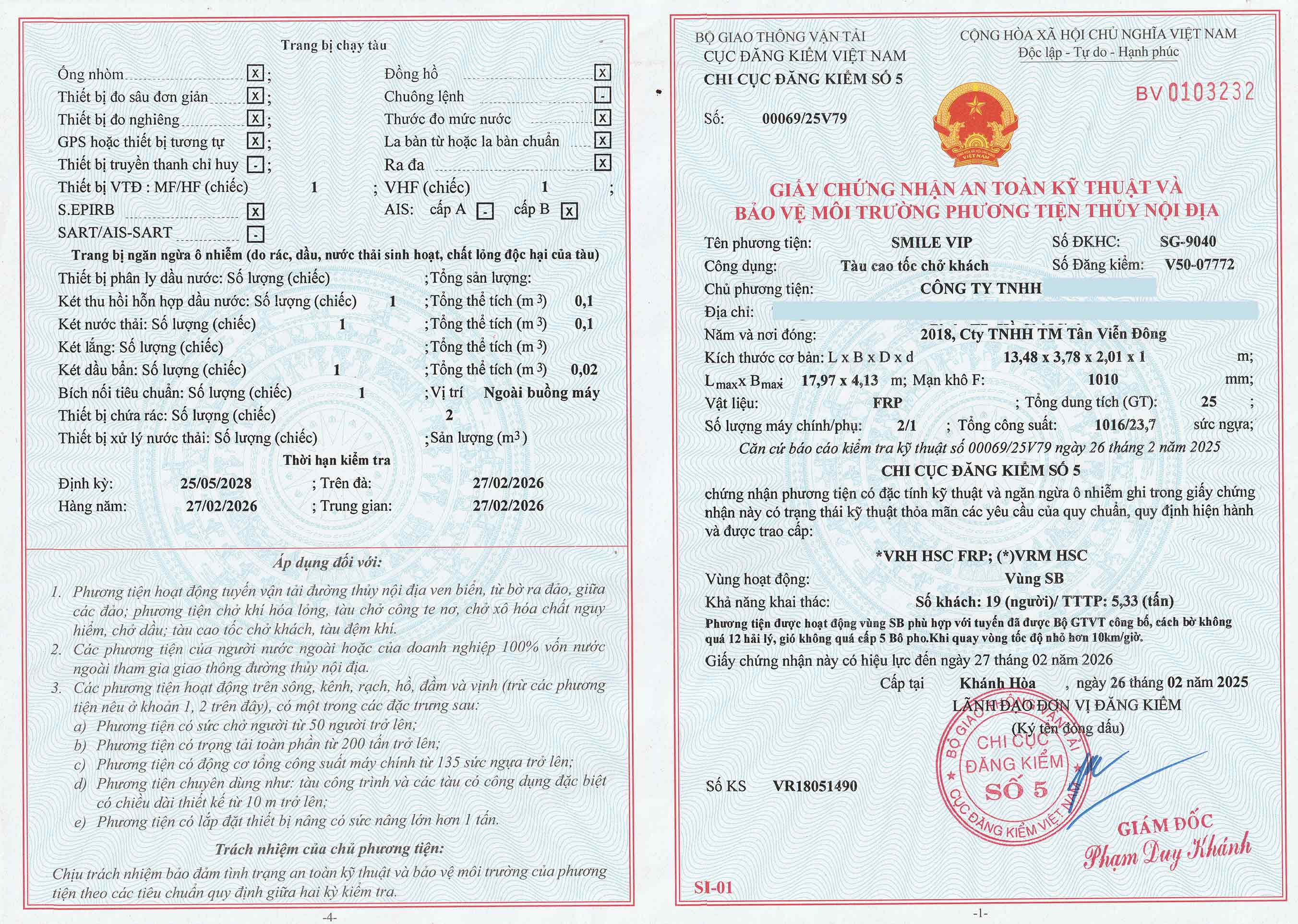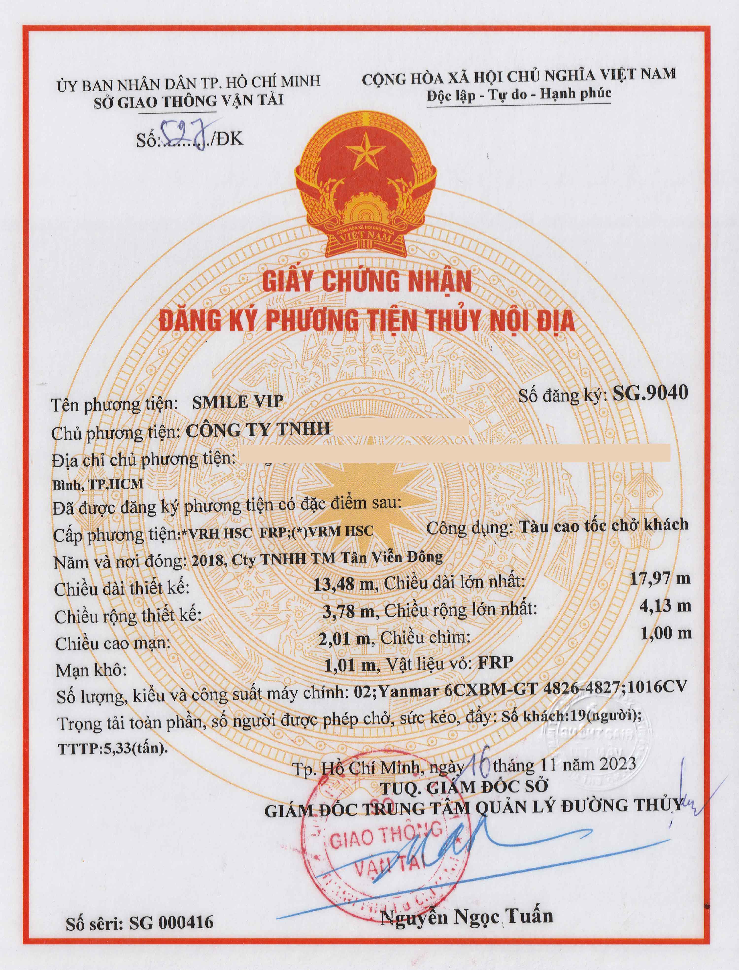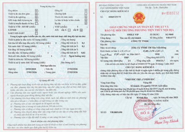 Vessel name marking – VR certification sticker